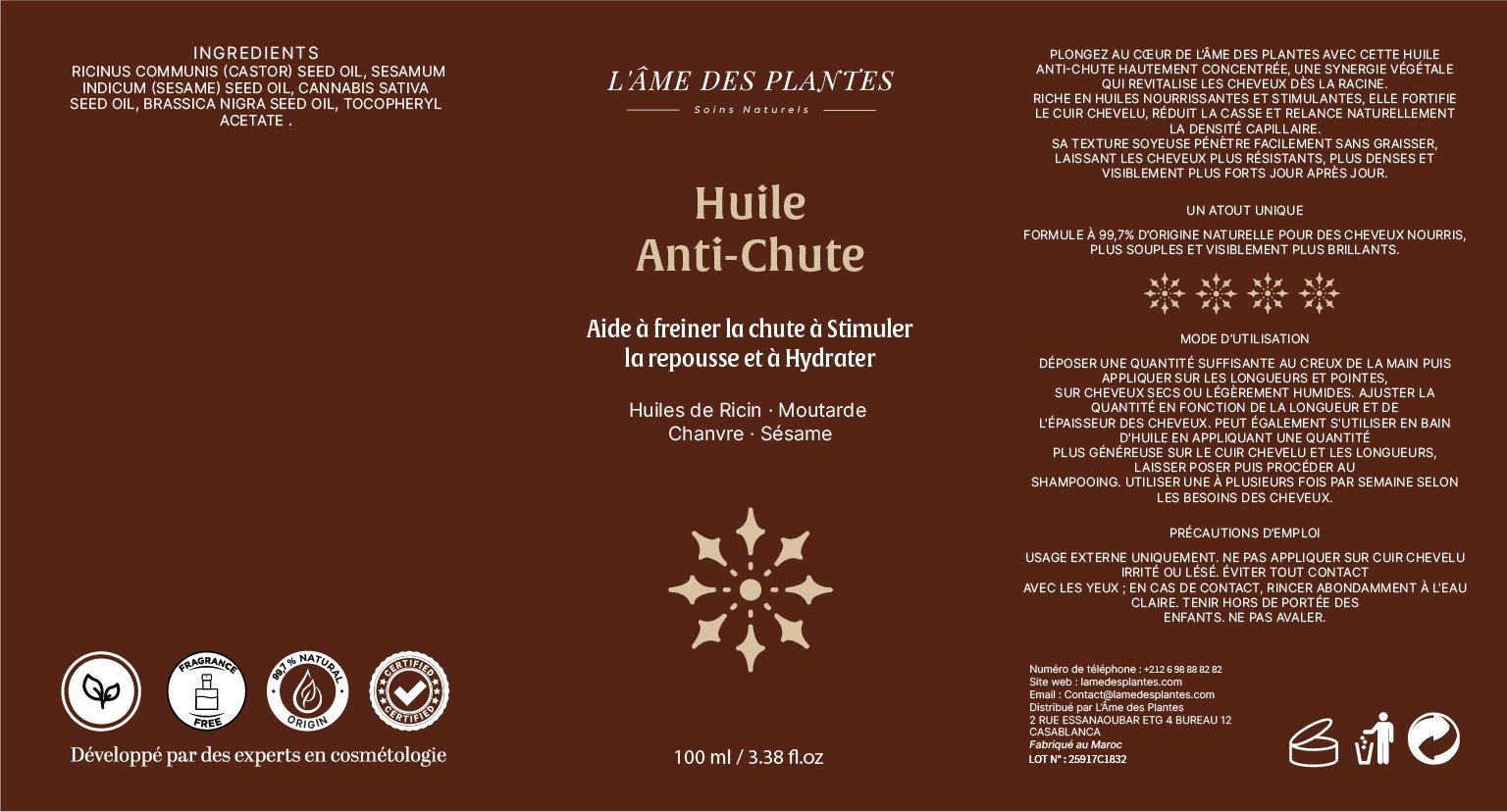 Découvrez notre huile anti-chute hautement concentrée, une synergie précieuse d’huiles végétales reconnues pour stimuler la pousse, fortifier la fibre capillaire et revitaliser le cuir chevelu dès la racine.